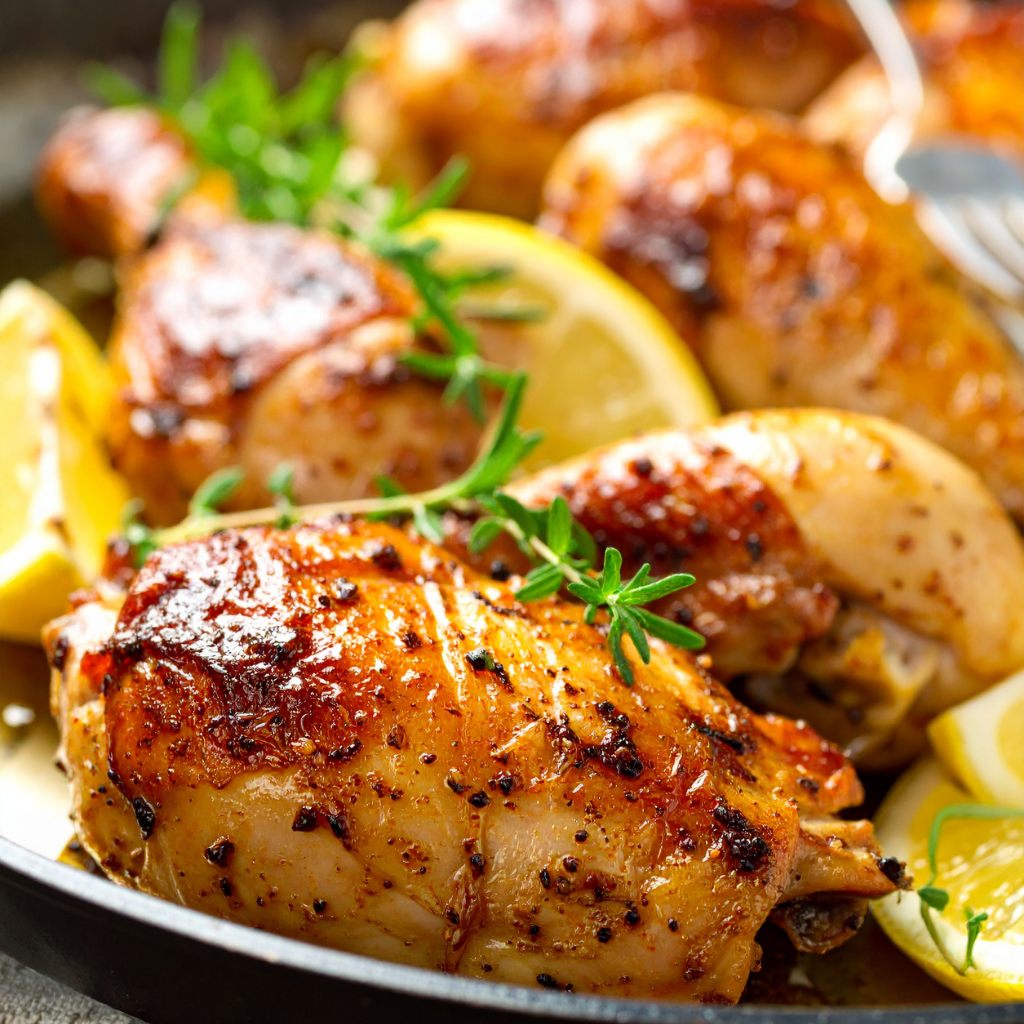 Un poulet fondant parfumé au citron, à l’ail et aux herbes, accompagné de légumes de saison rôtis. Un plat simple, généreux et plein de saveurs réconfortantes.