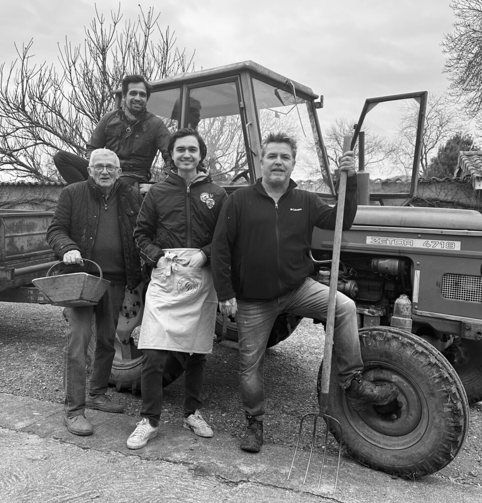 Au cœur de Vertaizon, la famille Giraudon cultive la terre depuis plusieurs générations. Après Pierre, l’aïeul, puis Joseph, l’arrière-grand-père, et Pierre, le grand-père et Christophe, le père, ce sont aujourd’hui Alexis et Charly qui poursuivent l’aventure familiale. Ils cultivent asperges, ail rose, oignons, échalotes et fraises en pleine terre, avec le même soin et le même respect de la terre que leurs aînés.